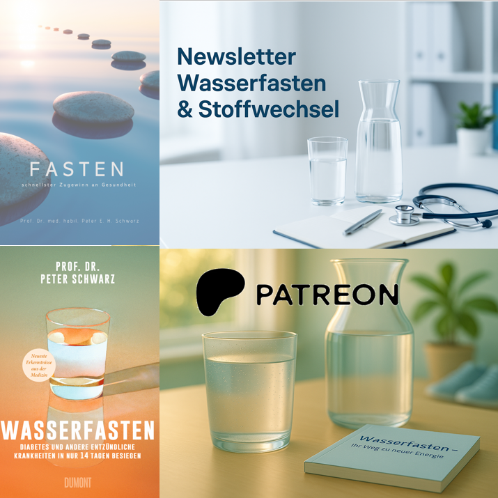 Wenn Sie sich zunächst informieren möchten, haben Sie mehrere Möglichkeiten: Sie können einen Monat lang kostenfrei Mitglied meiner Patreon‑Community werden und dort Videos, Hintergrundinformationen und Erfahrungsberichte zum Wasserfasten ansehen. Außerdem können Sie meinen Newsletter kostenlos abonnieren und erhalten regelmäßig medizinisch fundierte Informationen und praktische Tipps. Mein Fastenleitfaden ist zusätzlich als Buch im Buchhandel und bei Amazon erhältlich, wenn Sie sich Schritt für Schritt einlesen möchten, bevor Sie sich für das ambulante Programm entscheiden.