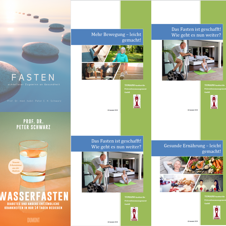 Sie brechen das Fasten langsam und strukturiert, erhalten Empfehlungen für Ihren Alltag und können optional am Fastenregister teilnehmen. Die Fastenbroschüre hilft Ihnen dabei , aber auch Ratgeber zur Ernährungsumstellung und Bewegung von unserem Partner dem TUMAINI Institut.