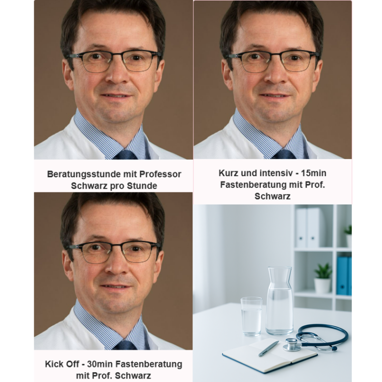 In meinen persönlichen Beratungsgesprächen haben Sie die Möglichkeit, Ihre Fragen zum Wasserfasten direkt mit mir zu besprechen – strukturiert, evidenzbasiert und auf Ihre Situation zugeschnitten. Je nach Bedarf können Sie zwischen einem 15‑minütigen Kurztermin zur Klärung einer konkreten Frage, einem 30‑minütigen Gespräch für einen ausführlichen Fastencheck mit individueller Empfehlung oder einer 60‑minütigen intensiven Beratung mit detaillierter Fastenplanung wählen. So entscheiden Sie selbst, wie viel Zeit Sie benötigen – und erhalten genau die Unterstützung, die Ihnen Sicherheit gibt, um Ihr Wasserfasten gut vorbereitet und mit einem klaren Plan zu beginnen. Diese Gespräche sind unabhängig, ob Sie fasten wollen oder ob Sie vor dem fasten oder im Anschluss Beratung suchen.